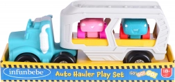 Zábavná sada pro malé řidiče – tahač s dvěma autíčky o délce 24 cm. Nabízí volně otočná kola pro plynulou jízdu a snadnou manipulaci, ideální pro domácí i venkovní hraní.