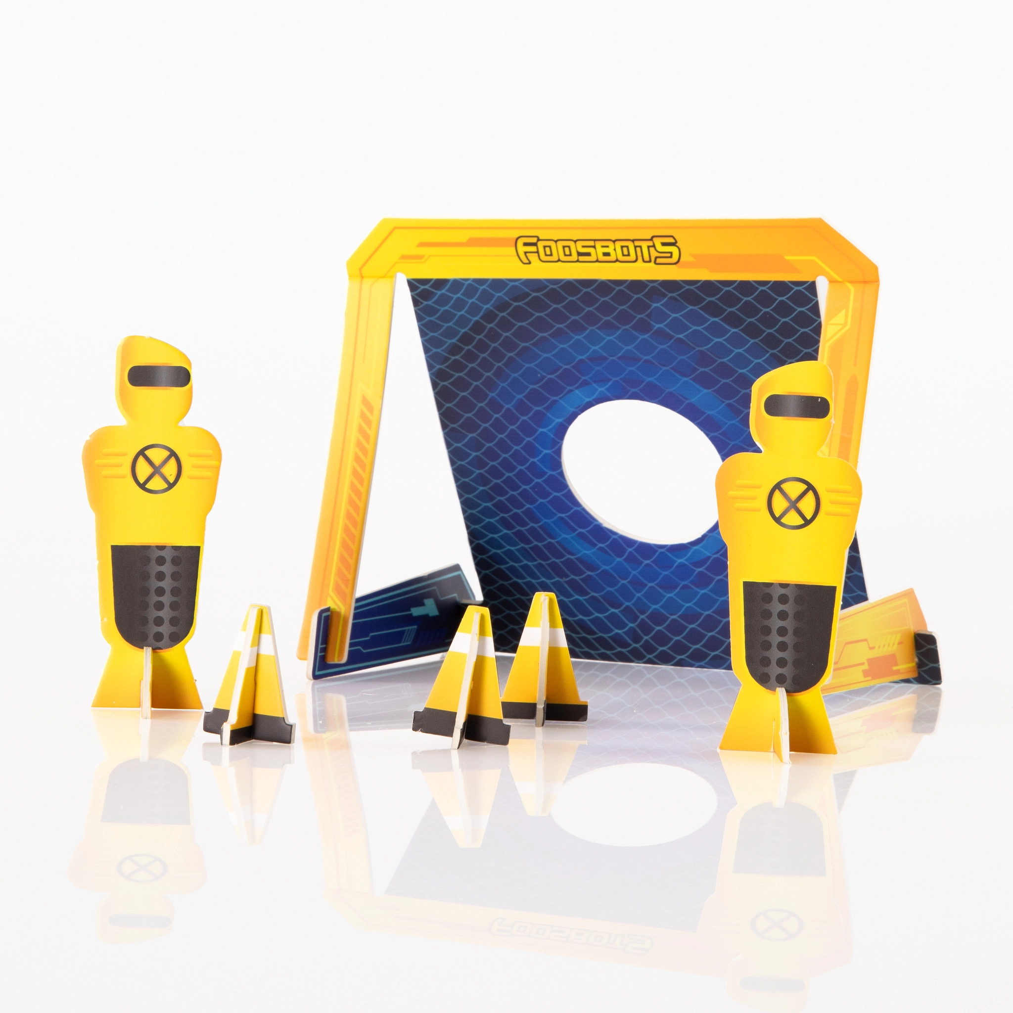 Foosbots stadionová bitva přináší do obýváku svižnou akci stolního fotbalu v kapesním formátu. Díky barevným mantinelům, vestavěným brankám a dvojici prstových robotů snadno rozjedete duel jeden na jednoho. Ovládejte své "boty" šikovnými prsty, vystřelte bílý míček a braňte branku v bleskovém tempu.