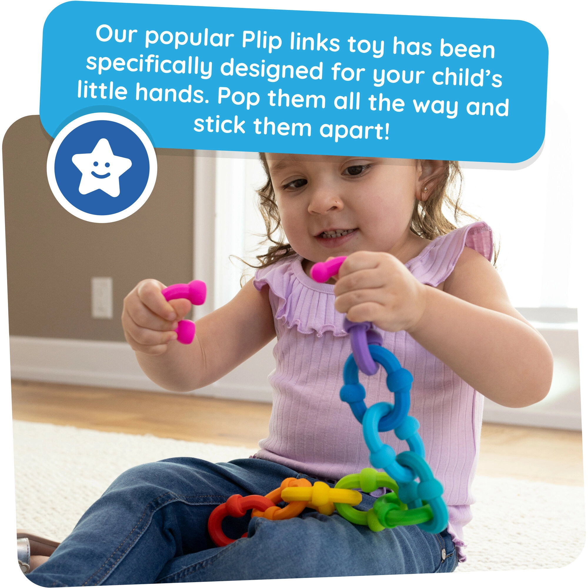 Objevte kreativní zábavu pro nejmenší s Fat Brain Plip Links – silikonovými spojovacími účky. Balení obsahuje 20 kusů, které lze snadno propojovat, tvarovat do různých obrazců a používat pro kousání i hmatovou stimulaci. Vyrobeno z food grade silikonu šetrného k dětské pokožce i zoubkům.