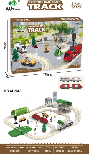 Tato detailně zpracovaná městská vláčkodráha přináší dětem realistický zážitek z provozu ve městě. V setu najdete koleje s tunelem, nádražní budovu, železniční přejezd se závorami, semafor, budovy, dopravní značky, dva vlaky a další doplňky. Světelné a zvukové efekty oživují každou jízdu – vlak houká, svítí mu přední reflektory, tunel bliká a stanice je podsvícená.