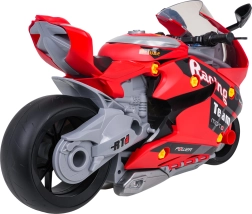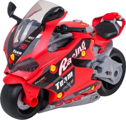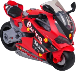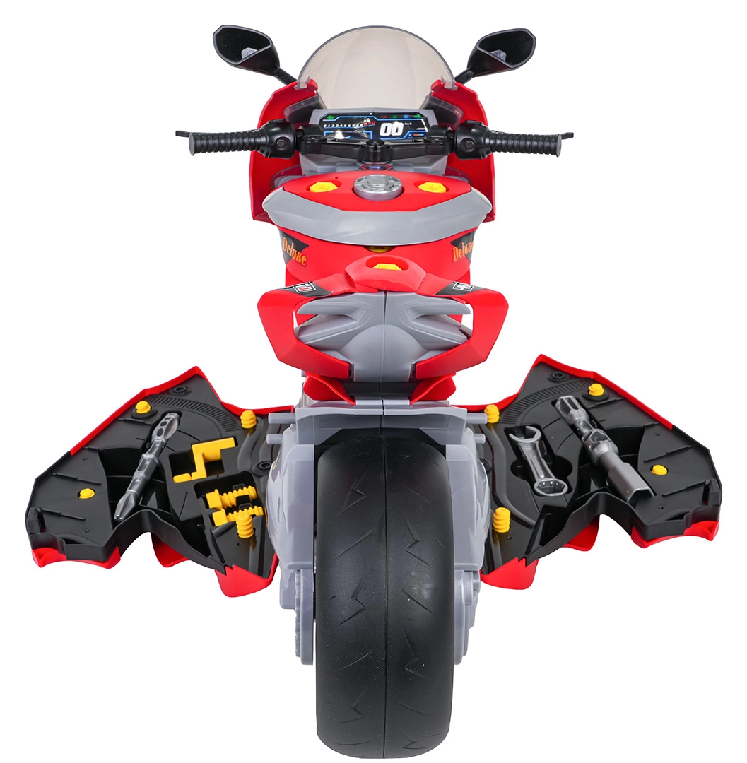 Motocykl je vyroben z kvalitních, odolných materiálů, má pohodlnou rukojeť na přenášení, velká pohyblivá kolečka a realistické detaily karoserie. Efekty zahrnují přední reflektory, zadní světla, zvuky motoru a jedinečný kouřový efekt z výfuku po doplnění vody. Ideální jako dárek pro zvídavé děti.