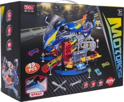 • 2v1: motorka a dílna – otevřete boky a začněte „servis“