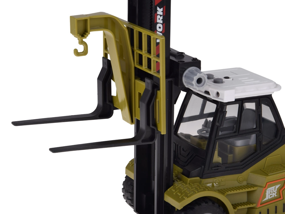 Vidlice lze ručně rozšiřovat a zužovat dle typu „nákladu“, jejich zdvih probíhá přes pohodlné otočné kolečko. Oceníte také otevíratelný průhledný „kufr“ na drobnosti a gumová kolečka, která plynule jezdí a neškrábou podlahu. Odolné provedení a detailní kabina podporují kreativní, bezpečnou a dlouhotrvající hru.