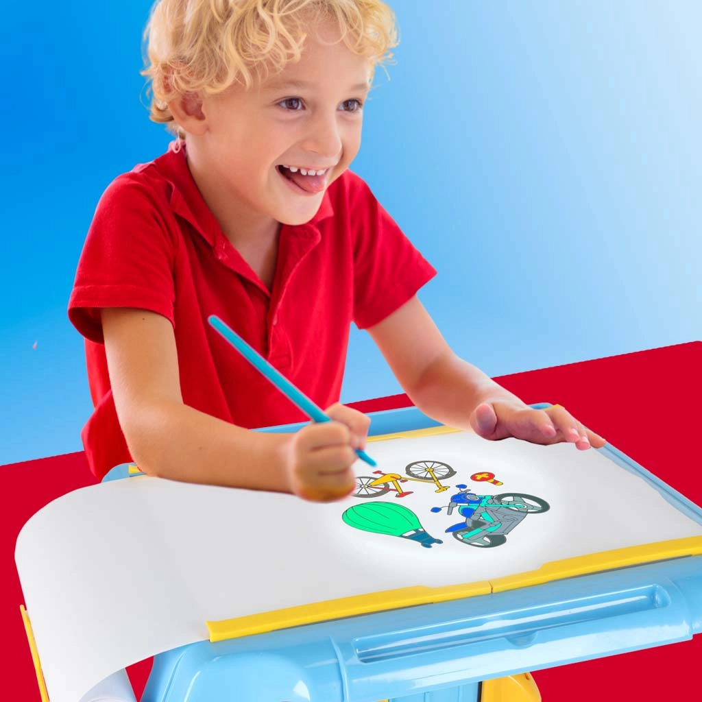 Otevřete dětem dveře do světa tvořivosti s praktickým stolkem a LED projektorem pro snadné obkreslování. Set podporuje rozvoj jemné motoriky, soustředění i fantazii a obsahuje papírovou roli, fixy, pastelky a 72 předloh pro kreslení. Ideální volba pro zábavnou výuku kreslení dětí od 3 let.