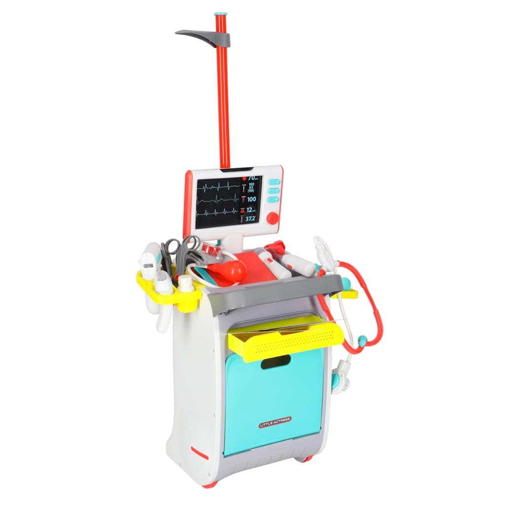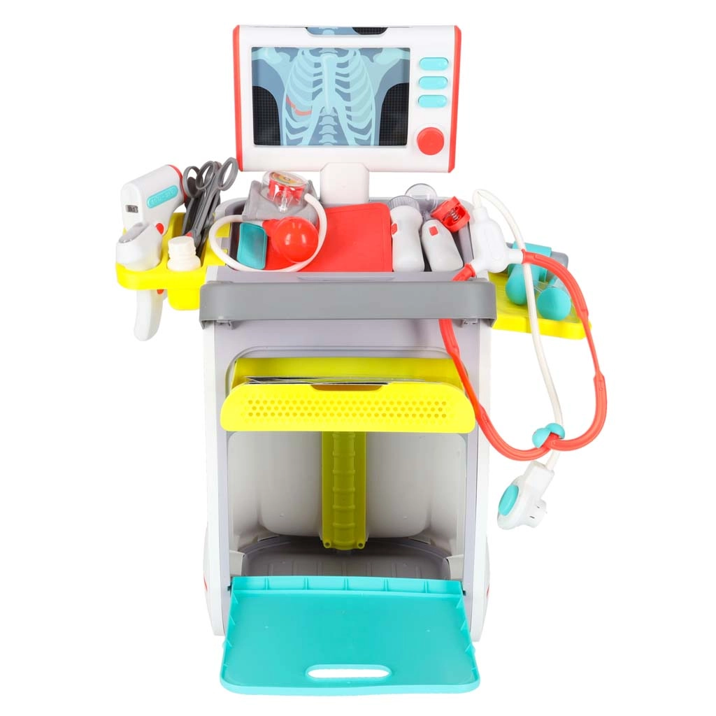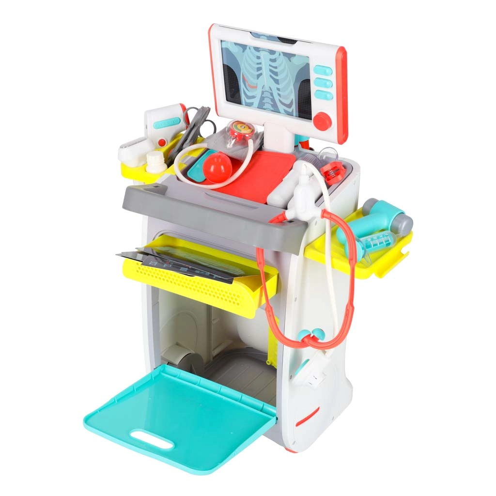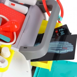 Tato interaktivní dětská lékařská stanice podporuje kreativní hraní rolí, jemnou motoriku i sociální dovednosti. Stanice přehrává melodie a zvuky, vybrané nástroje svítí a reagují, takže vyšetření pacienta je ještě realističtější.