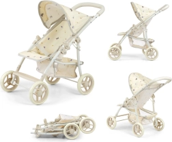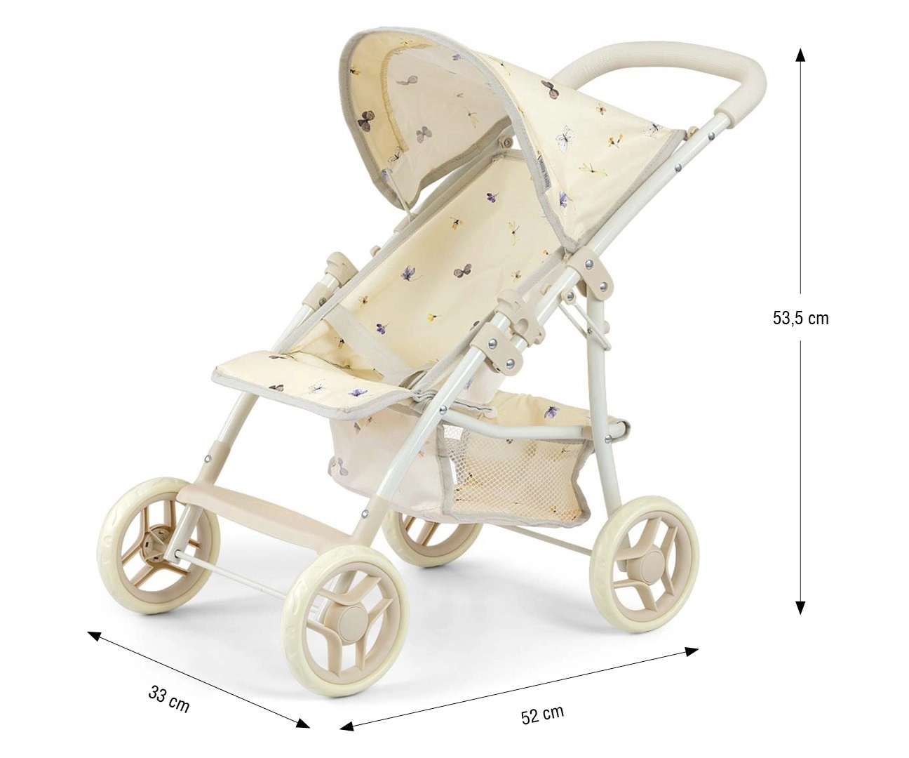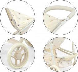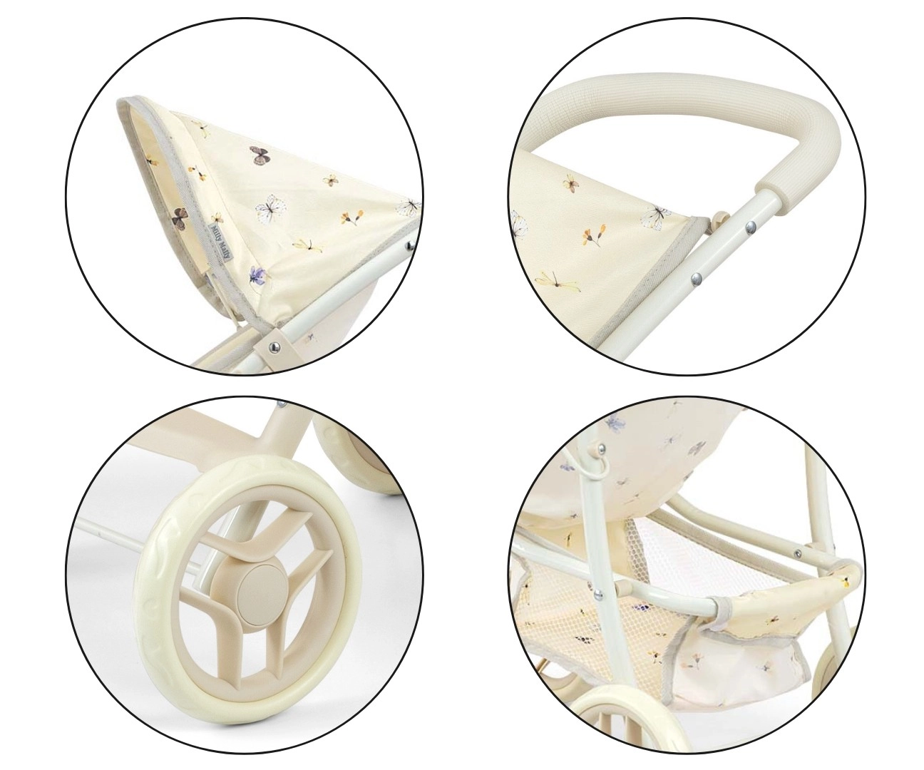 Stylový kočárek pro panenky MILLY MALLY Natalie Nature nabízí realistický vzhled a funkce jako skutečný dětský kočárek. Má lehkou kovovou konstrukci, skládací stříšku, bezpečnostní pásy a spodní síťku na doplňky. Díky pěnové rukojeti a tichým kolečkům je ideální pro pohodlné hraní doma i venku.