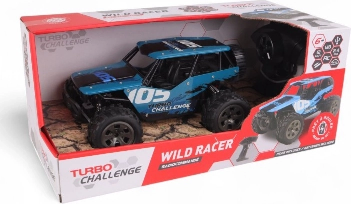 RC auto TURBO CHALLENGE Wild Racer je ideální volbou pro začátečníky i malé závodníky. Díky pevné kovové konstrukci a gumovým pneumatikám zvládne různé povrchy a přitom si udrží skvělou stabilitu. Pružinové tlumiče na všech kolech účinně pohlcují nerovnosti a zajišťují plynulou jízdu.
