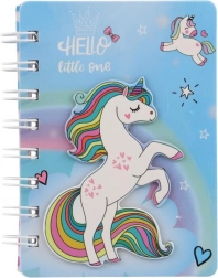 Roztomilý kroužkový zápisník s motivem jednorožce je ideální pro děti i dospělé na každodenní poznámky, kresby i tajné vzkazy. Díky kompaktním rozměrům 9,5 × 12 cm se snadno vejde do batohu i kabelky a je skvělým společníkem do školy, na cesty i na prázdniny. Praktický formát, kroužková vazba a barevný duhový design potěší všechny milovníky jednorožců.