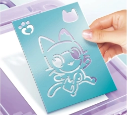 V kufříku najdete vše, co je potřeba pro tvorbu originálních obrázků: elektronický airbrush, 8 fixů, 10 šablon, 10 archů papíru a arch samolepek. Šablony lze používat opakovaně, takže si děti mohou vytvářet stále nové motivy a rozvíjet svou představivost.