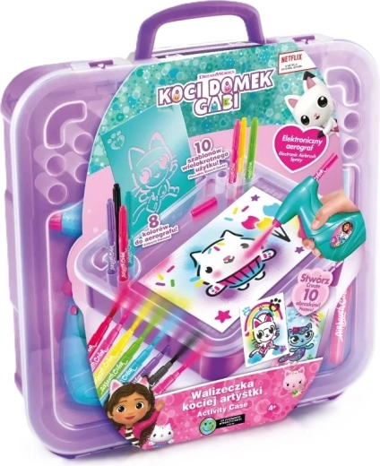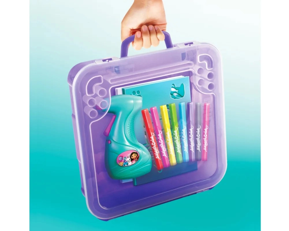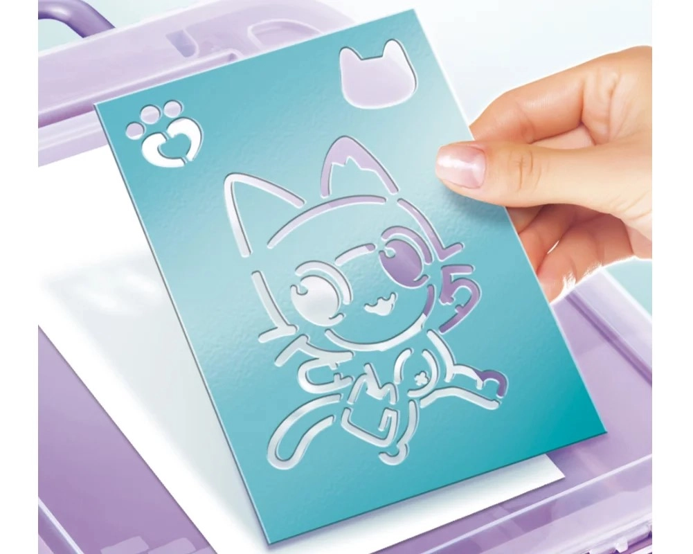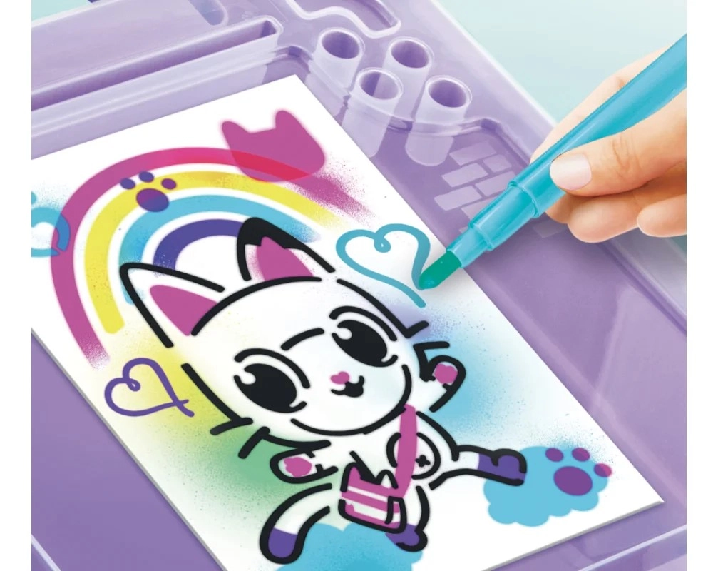 Tato přenosná kreativní sada je skvělým dárkem pro malé umělce, kteří milují barvy a fantazii. Stačí vložit fix do zařízení, stisknout tlačítko a začít stříkat – jednoduché ovládání zvládnou i mladší děti. Design inspirovaný pohádkou Kocí domek Gabi potěší všechny fanoušky roztomilých kočičích postaviček.