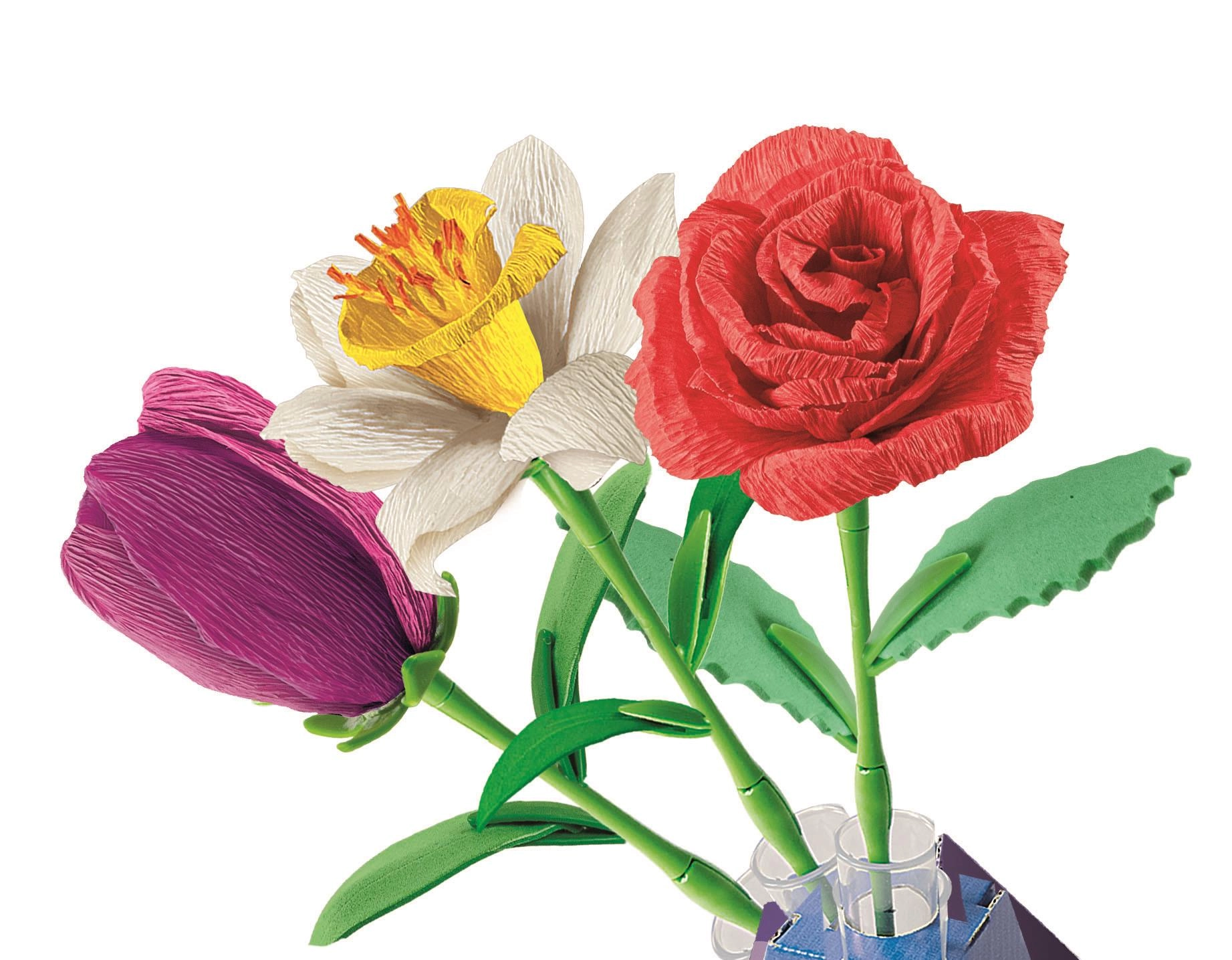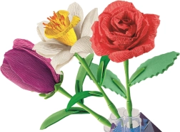 - Komponenty pro sestavení květin (stonky, okvětní lístky, koruny), personalizovatelný kartonový květináč