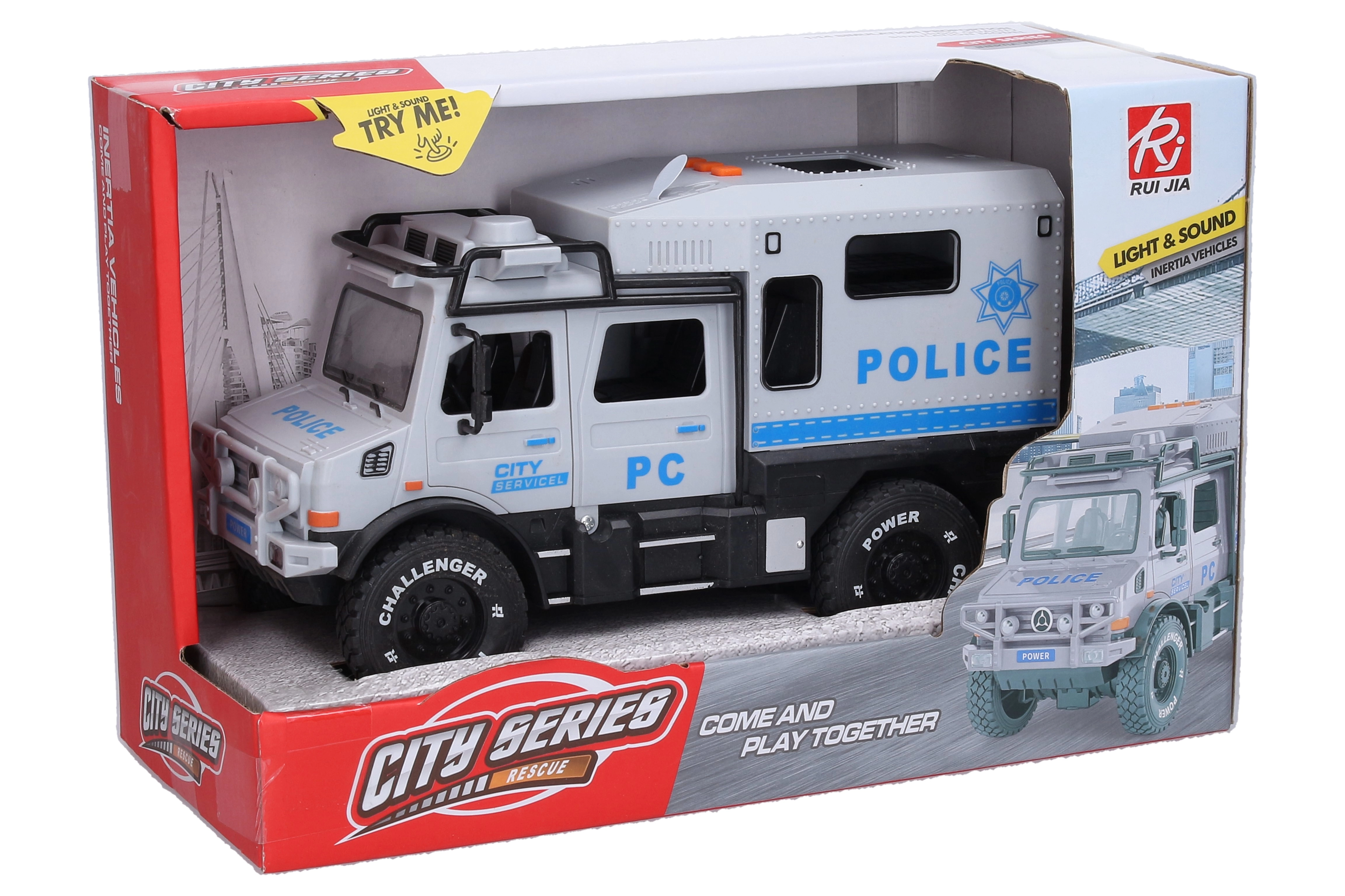 Vydejte se na zásah s policejním obrněným autem, které zaujme detailním zpracováním a bohatými funkcemi. Díky setrvačníku se vozidlo po postrčení rozjede a díky efektům si děti užijí ještě realističtější hru.