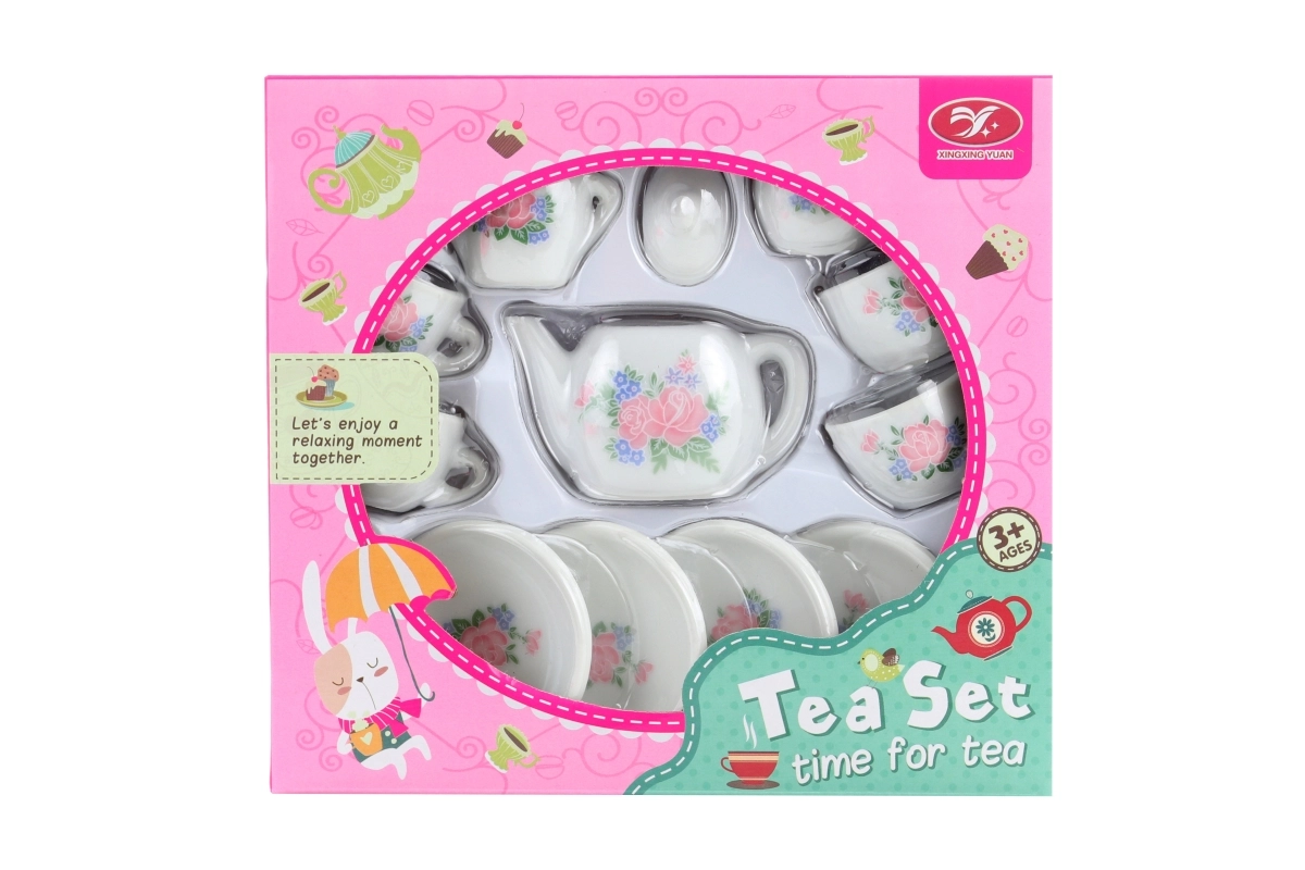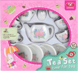Roztomilý porcelánový čajový set s růžičkami potěší všechny malé hostitelky. Sada obsahuje 4 hrnečky s podšálky, konvičku a cukřenku, ideální pro hraní na čajový dýchánek. Kompaktní balení a kvalitní zpracování z porcelánu zajišťují elegantní vzhled a dlouhou životnost. Vhodné pro děti od 3 let.