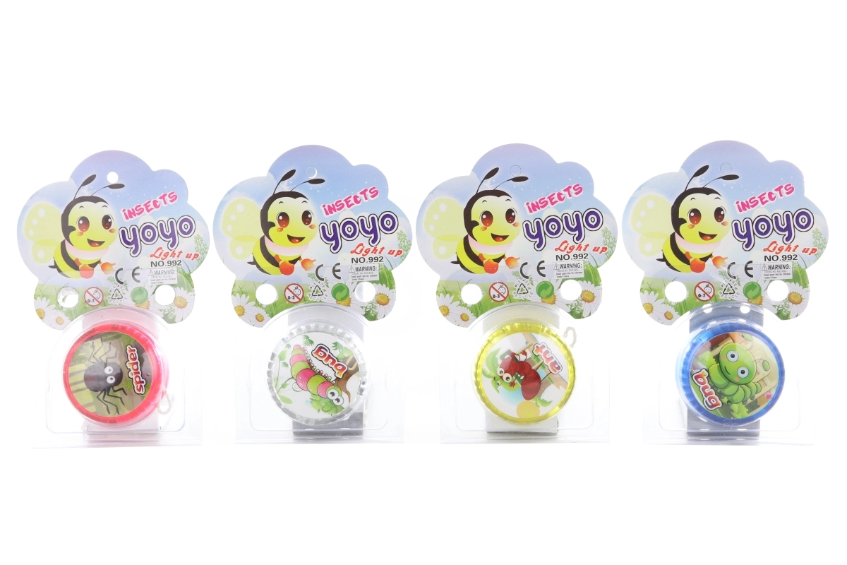 Zábavné plastové jojo s obrázky hmyzu, které při roztočení svítí. Ideální pro děti od 3 let, nabízí efektní světelné efekty, snadnou manipulaci a odolné provedení pro každodenní hraní.