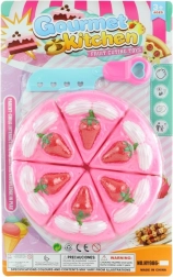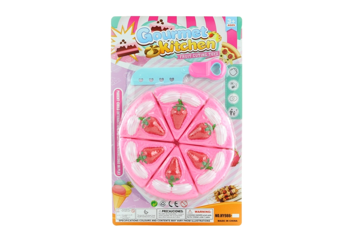 - Realistická hra – 6 dílků dortu spojených suchým zipem pro opakované krájení.