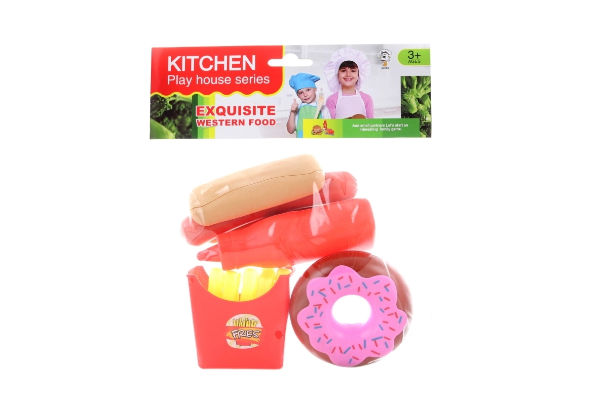 Obsahuje klasické oblíbené kousky – hot dog, hranolky v krabičce, donut a kečup – které dětem pomohou objevovat svět jídla zábavnou formou. Lehké a odolné provedení je bezpečné pro děti od 3 let.