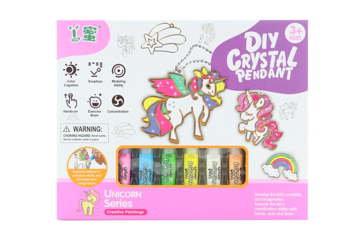 Objevte zábavnou kreativní sadu pro děti, se kterou si snadno vytvoří vlastní přívěsky s motivem jednorožců. Balení nabízí vše potřebné – 6 přívěšků k dozdobení, 6 barev, třpytky, pinzetu a šňůrky. Ideální pro rozvoj kreativity a jemné motoriky, vhodné pro děti od 3 let.