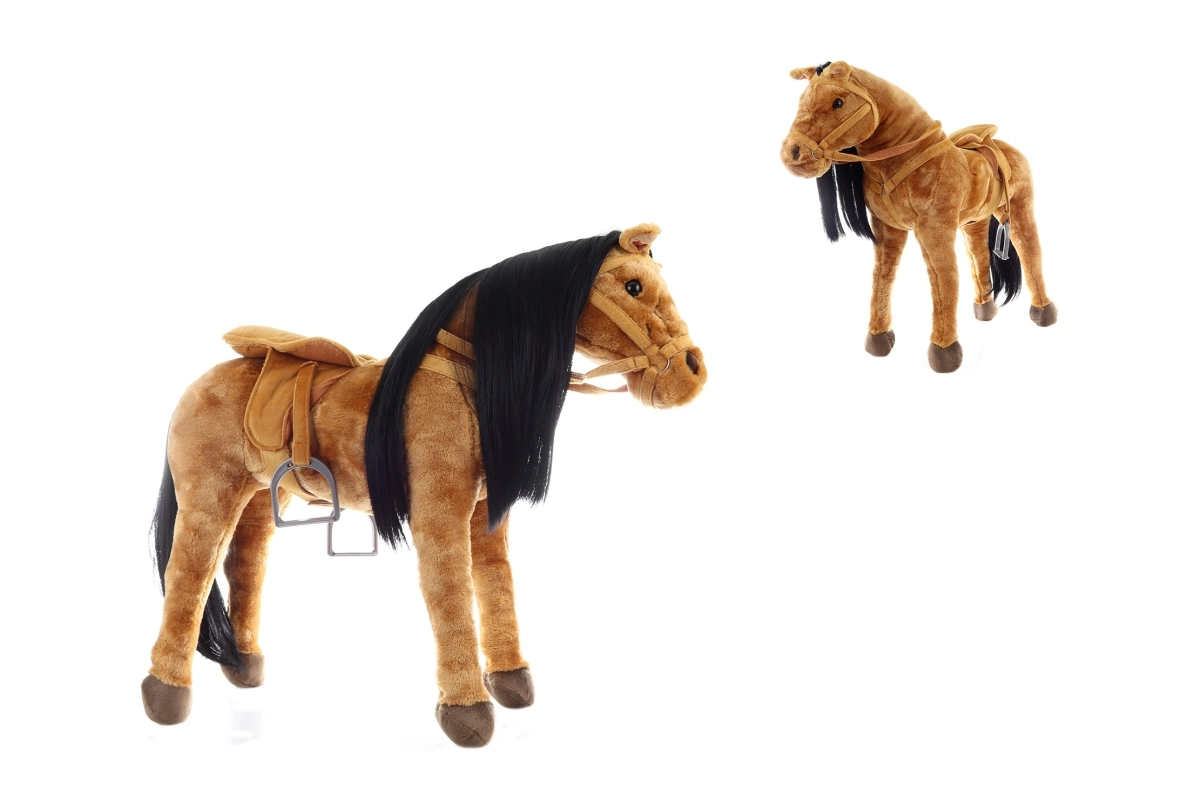 Tento detailně zpracovaný plyšový kůň potěší každého malého jezdce. Díky pevné a stabilní konstrukci je vhodný nejen pro imaginární projížďky, ale i na bezpečné sezení. Realistické zvuky řehtání a klusu po stisknutí ouška podpoří dětskou fantazii a přinesou ještě autentičtější zážitek ze hry.