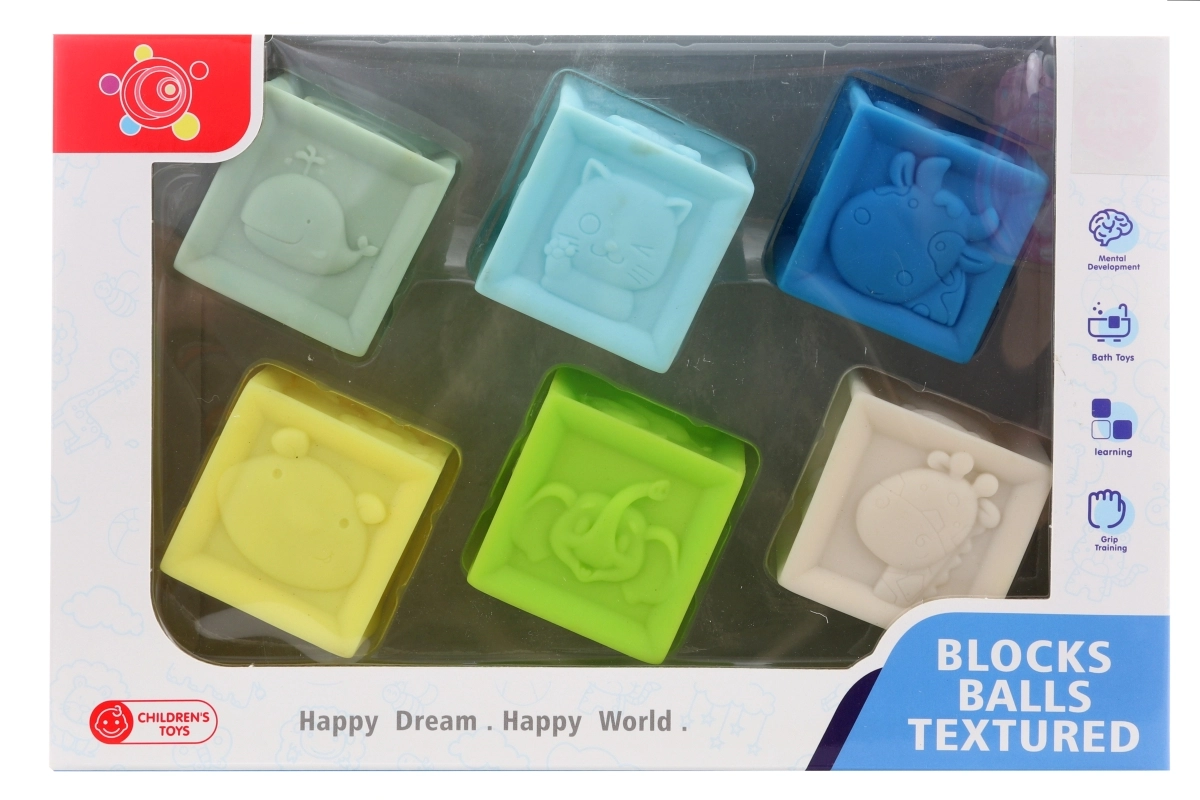 Objevte hravou sadu měkkých gumových kostek, které jsou navržené pro první objevování světa. Kostky jsou příjemné na dotek, lehké a bezpečné, takže skvěle padnou do ručiček batolat. Díky možnosti použití i ve vodě si děti užijí spoustu zábavy nejen na podložce, ale i během koupání.