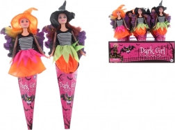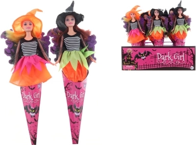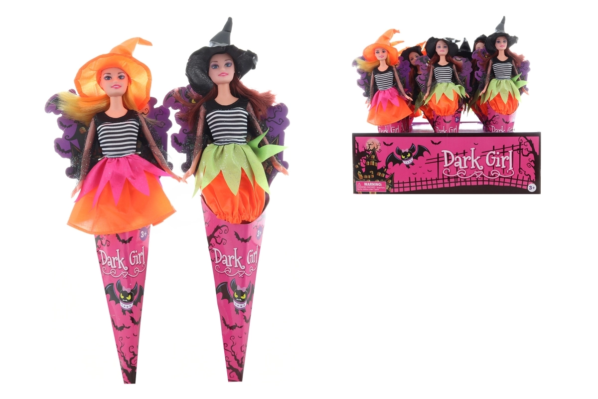 Okouzlující panenka čarodějnice v dekorativním kornoutu potěší každého malého kouzelníka. Díky kloubové konstrukci má pohyblivé ruce, nohy i hlavu, takže snadno zvládne nejrůznější pózy a halloweenská dobrodružství. Vyrobená z odolného plastu s papírovým kornoutem, velikost panenky s křídly cca 35 × 10 cm. Vhodné pro děti od 3 let.