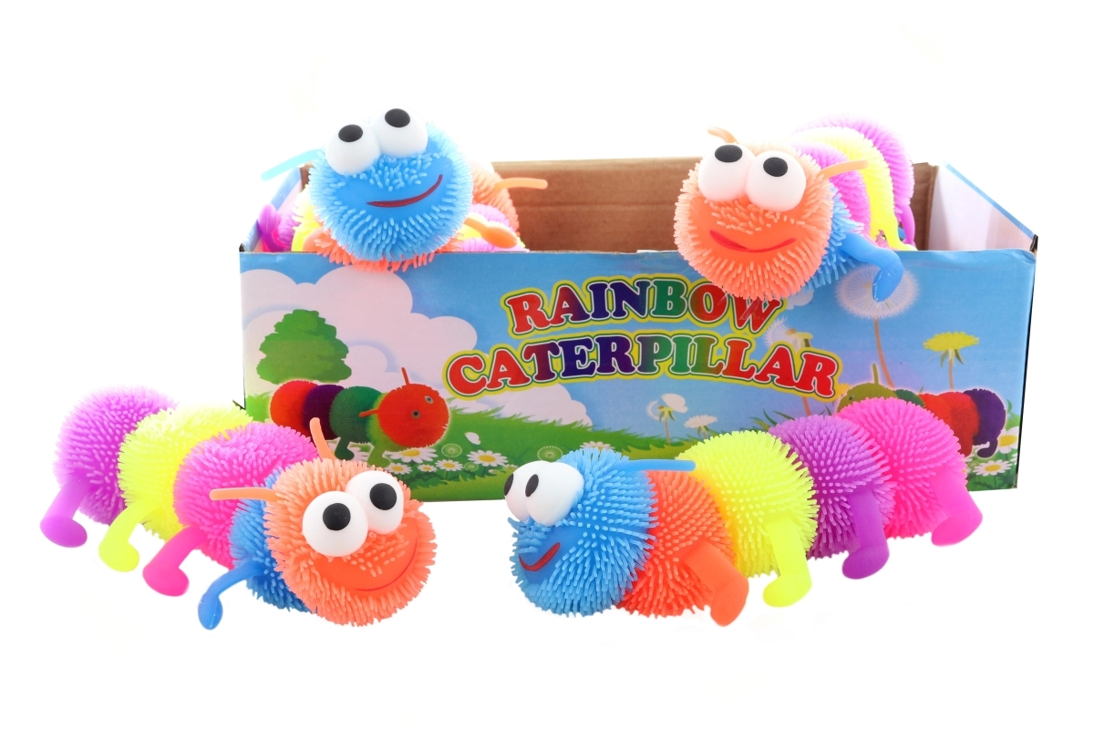 Zábavná gumová housenka se světelným efektem pro děti od 3 let. Při dotyku či úderu bliká světýlko v přední části. Měkký, střapatý povrch podporuje smyslové vnímání a jemnou motoriku. Velikost cca 16,5 cm, ideální do malé dětské ručičky.