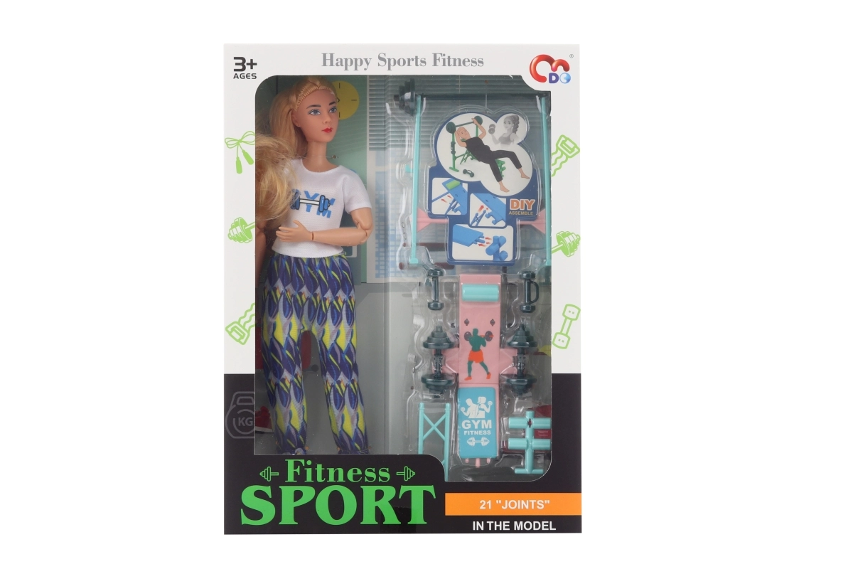 Objevte zábavu a pohyb s touto kloubovou panenkou a bohatou sadou fitness doplňků. Panenka má ohybnou hlavu, ruce i nohy, takže zvládne spoustu realistických pozic při cvičení. Součástí je cvičící lavice a 5 činek různých velikostí. Ideální kreativní hra pro děti od 3 let.