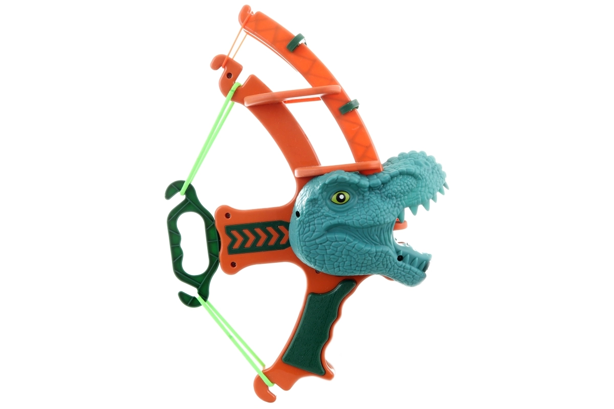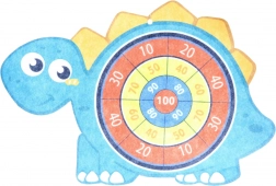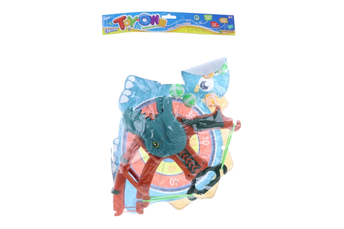 Zábavná sada pro malé střelce: terč s motivem dinosaura a dětská kuše se suchými zipy pro bezpečnou hru. Balení obsahuje terč, 5 míčků, kuši a háček k zavěšení. Ideální pro rozvoj zručnosti a soustředění dětí od 3 let.