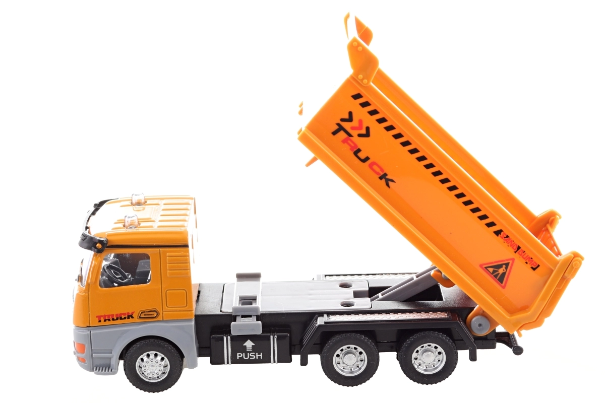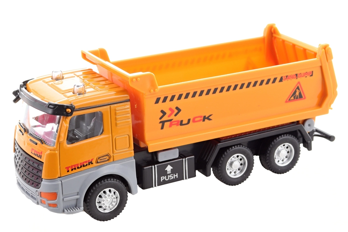 Tato robustní sklápěčka v měřítku přibližně 1:48 nabídne dětem realistické hraní na stavbě. Díky kovovému tělu a pevným plastovým dílům vydrží každodenní použití, zatímco výklopná korba usnadňuje nakládání a vyklápění drobných předmětů.