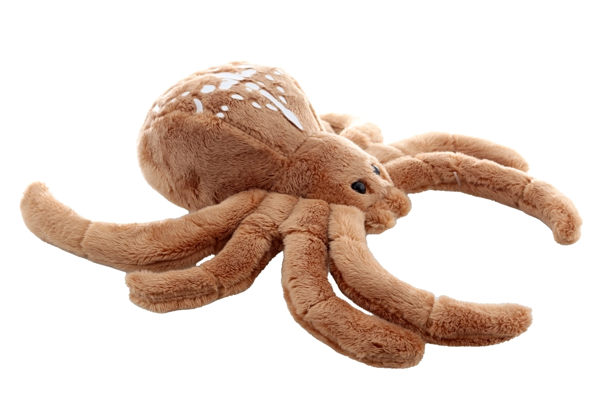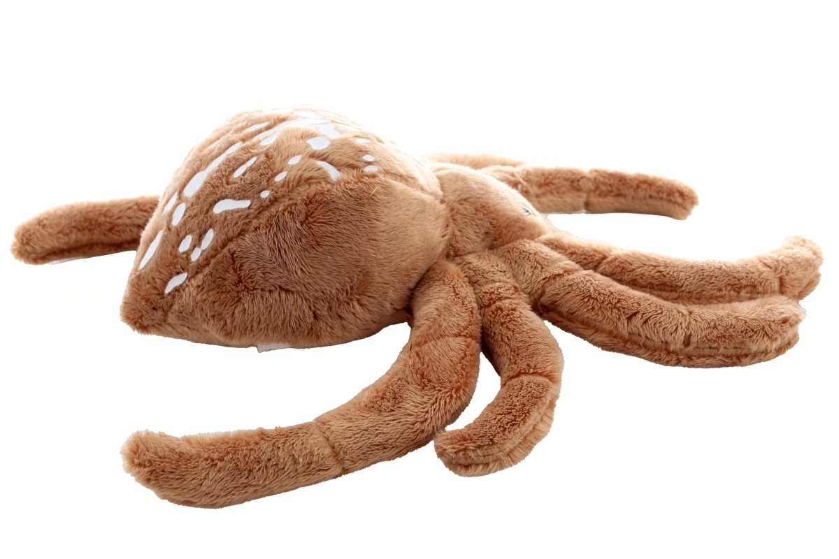 Měkká, příjemná plyš láká k mazlení a je šetrná k dětské pokožce, takže se pavouček hodí i pro miminka.