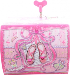 Elegantní růžová hrací šperkovnice s motivem baletu potěší malé i velké milovnice tance. Po natažení klíčku se po otevření víka roztančí figurka baletky před zrcátkem a zazní jemná melodie. Šperkovnice nabízí prostor na drobné poklady a šperky, má praktické zavírání a okouzlí svým něžným designem. Hrací mechanismus na klíček, rotující baletka, zrcátko uvnitř, kompaktní rozměry cca 13 × 10 × 10 cm.
