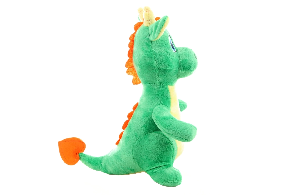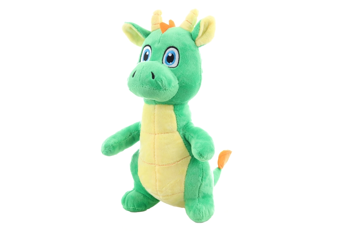Tento zelený plyšový dráček s kontrastním bříškem a roztomilými detaily se rychle stane oblíbeným společníkem každého dítěte. Díky měkoučkému povrchu a nadýchané výplni je ideální pro uklidňující objetí i jemné hraní během dne.