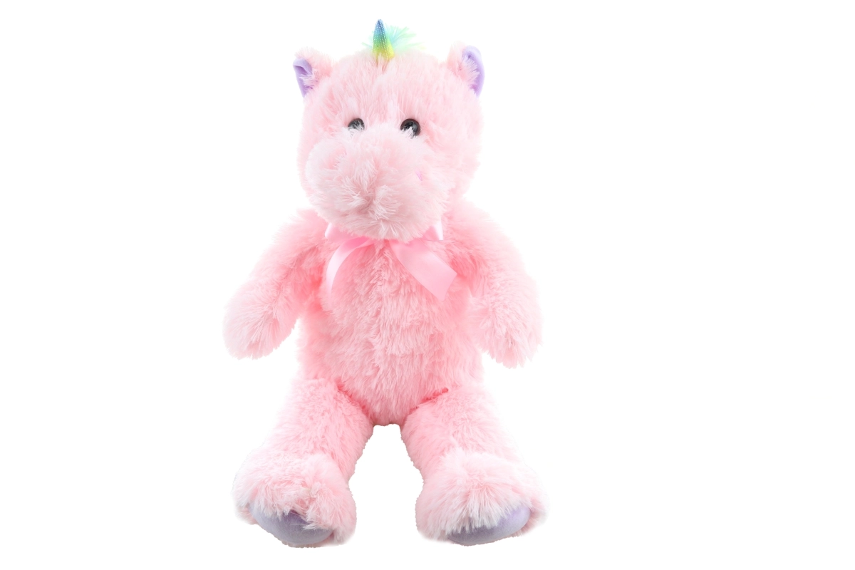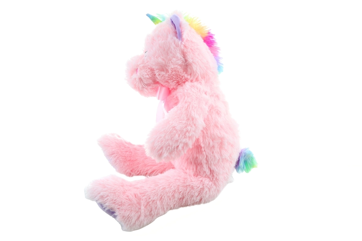 Barevný roh, hříva a saténová mašlička dodávají hračce kouzelný vzhled, který děti milují.