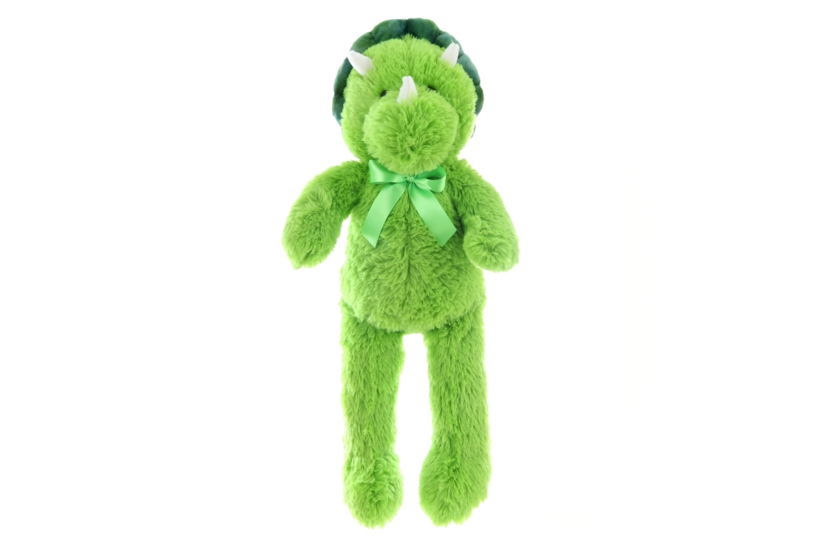 Design s drobnými rohy, hřbetními „trny“ a mašlí působí přátelsky a vesele, takže se hodí do každého dětského pokoje. Díky kvalitnímu zpracování je dinosaurus vhodný pro každodenní mazlení a dlouhodobé používání.
