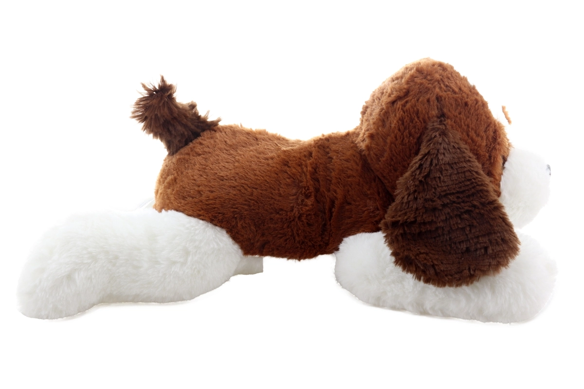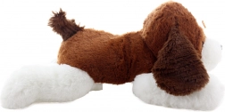 Tento světlý plyšový pejsek s hnědými oušky a bílými tlapkami si rychle získá srdce malých i velkých. Díky hebkému povrchu a ležící poloze je skvělý na mazlení, odpočinek i jako dekorace do dětského pokoje. Bezpečné provedení bez malých odnímatelných částí je vhodné pro miminka.