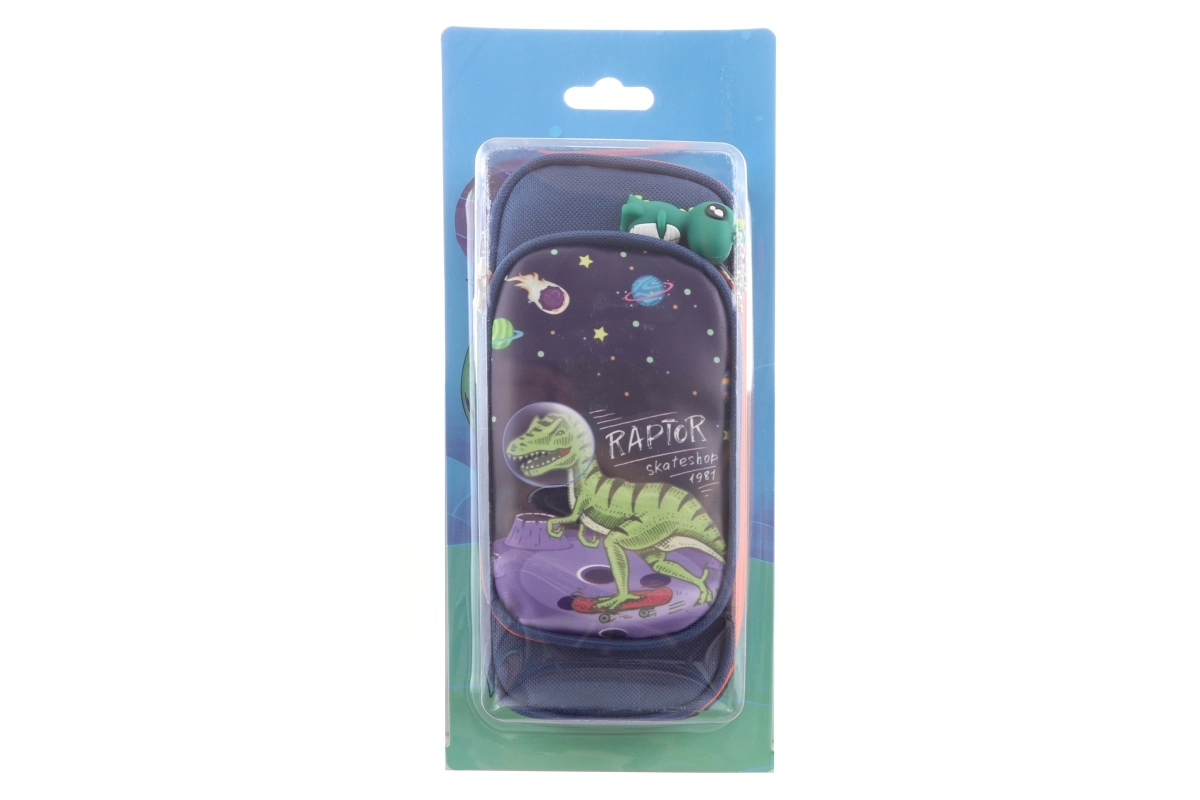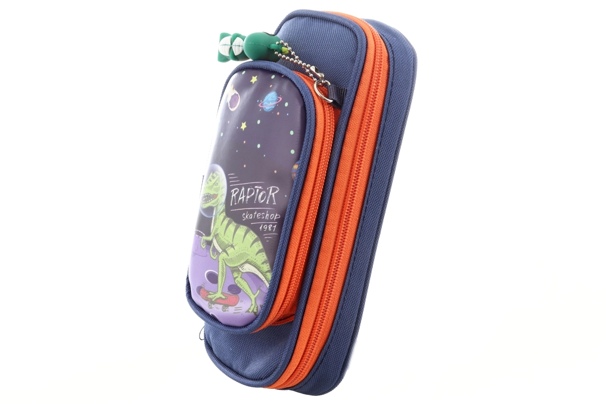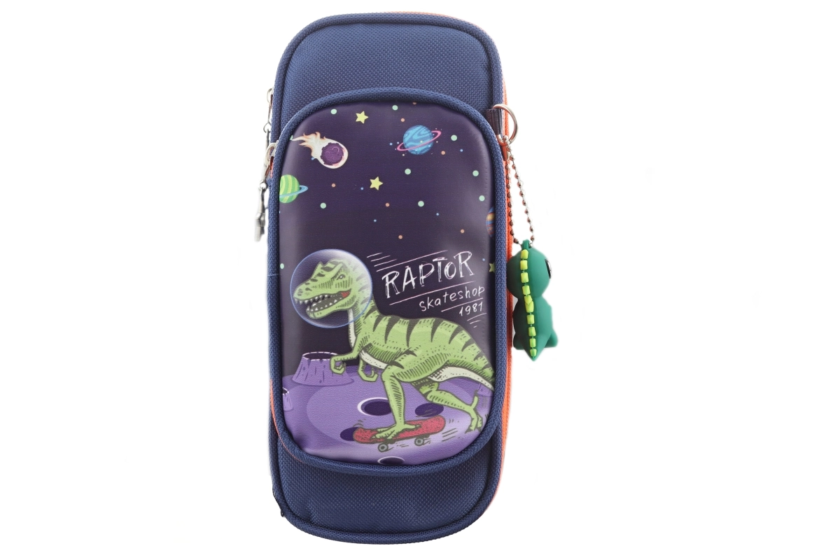 Praktický a odolný penál s dinosauřím motivem nadchne všechny milovníky prehistorických tvorů. Hlavní přihrádka pojme tužky, propisky, pastelky i gumu, menší kapsa je ideální na drobnosti jako ořezávátko či klíče. Součástí balení je stylový přívěsek dinosaura pro snadné rozpoznání penálu.