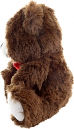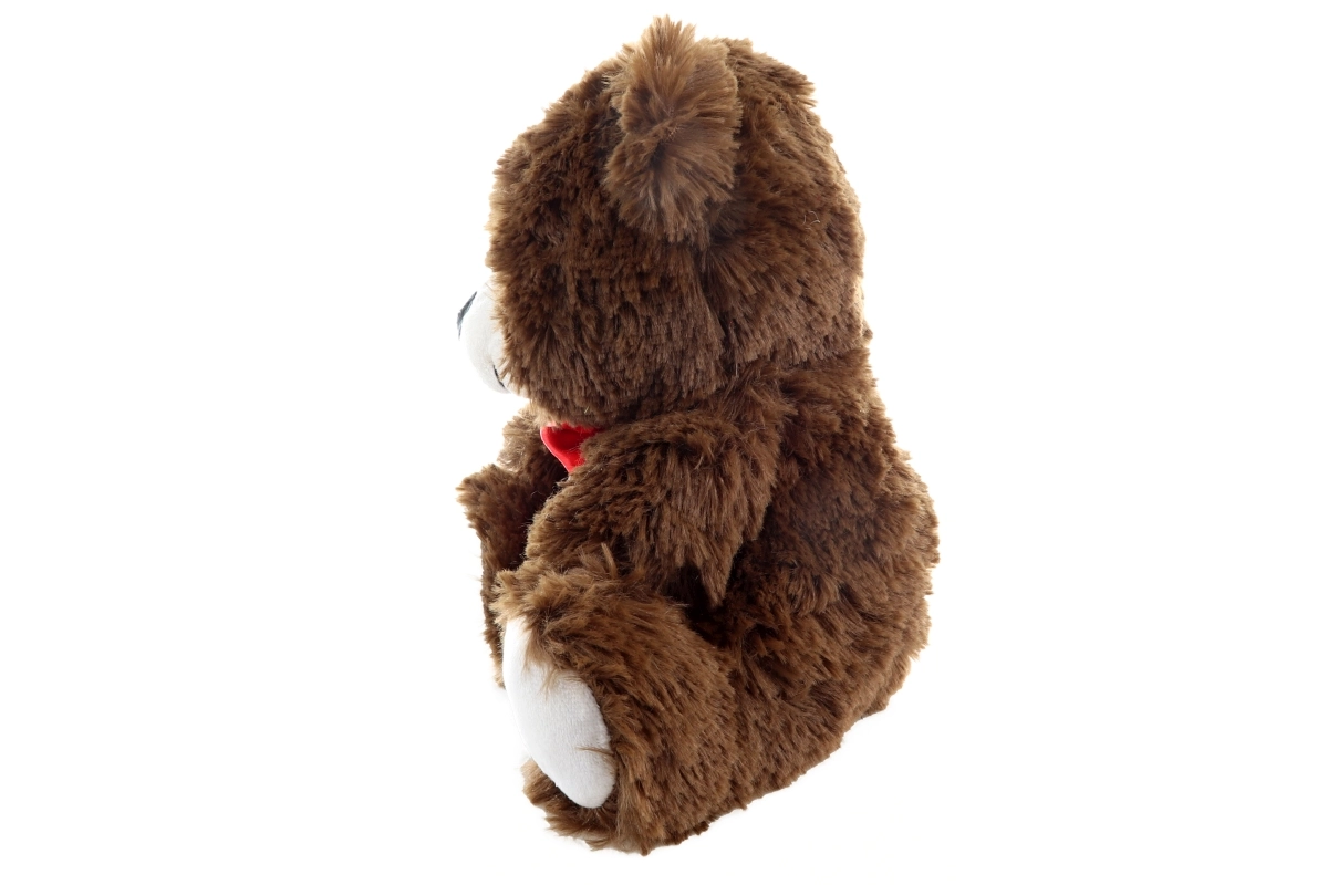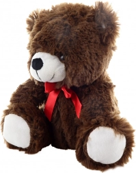 Tento tmavě hnědý plyšový medvídek si získá srdce dětí i dospělých. Má hebké chloupky, kontrastní bílé tlapky a čumáček, výrazná očička a roztomilou červenou mašli. Díky kvalitnímu zpracování a měkké výplni je perfektní na objímání, uspávání i jako dekorace do dětského pokojíčku.