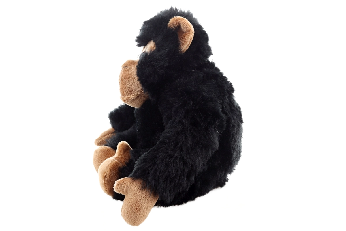 Tento realisticky zpracovaný plyšový šimpanz s černou srstí a světle hnědým obličejem je skvělou volbou jako dárek pro nejmenší i starší děti. Díky kompaktním rozměrům 20 × 15 × 15 cm se snadno vejde do kočárku, postýlky nebo batůžku.