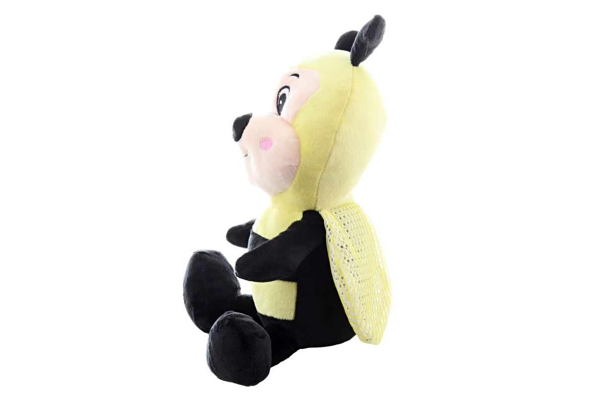 Klasické žluto-černé proužky, jemná křidélka a přátelský výraz podporují rozvoj fantazie i klidné usínání.