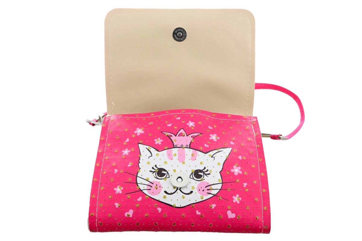 Tato lehká a praktická kabelka s motivem kočičky je skvělým doplňkem na procházky, do školky i na návštěvy. Díky kompaktním rozměrům se pohodlně nosí a dětem dobře sedí přes rameno.