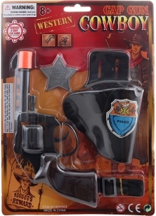 Tato sada obsahuje plastovou pistoli na kapsle, praktické pouzdro na opasek a odznak, díky kterým bude každá hra na policisty či kovboje ještě realističtější. Jednoduché ovládání a lehká konstrukce zajišťují pohodlné používání i pro menší děti.