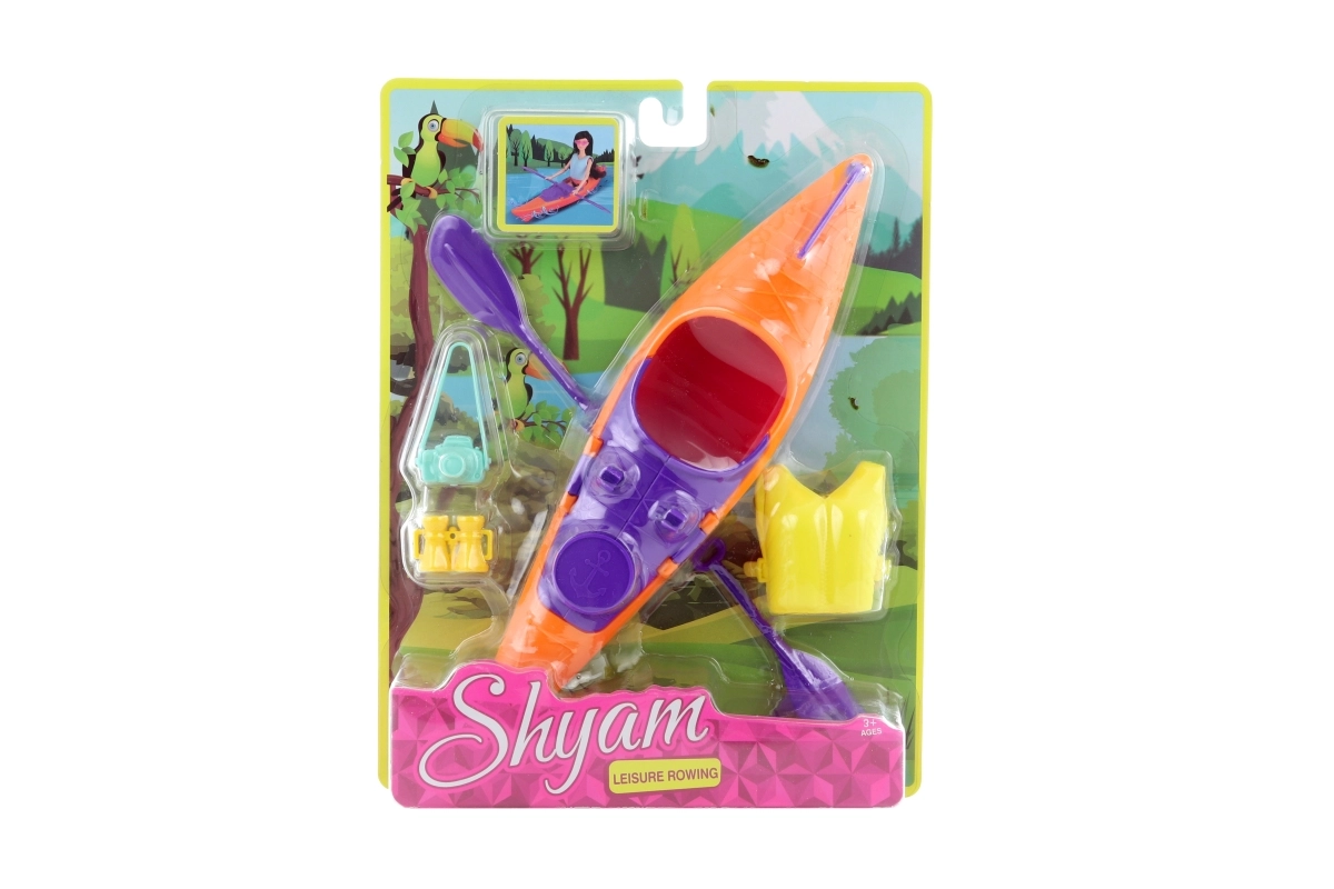 Užijte si vodní dobrodružství s tímto roztomilým setem – kajak pro panenku se skvělými doplňky. Součástí je záchranná vesta, pádla, dalekohled a foťák, vše z odolného plastu pro bezpečné a snadné hraní. Ideální pro děti od 3 let.