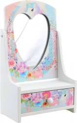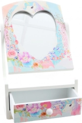 Naklápěcí zrcátko ve tvaru srdce usnadní česání i zkoušení doplňků a dodá šperkovnici kouzelný vzhled.