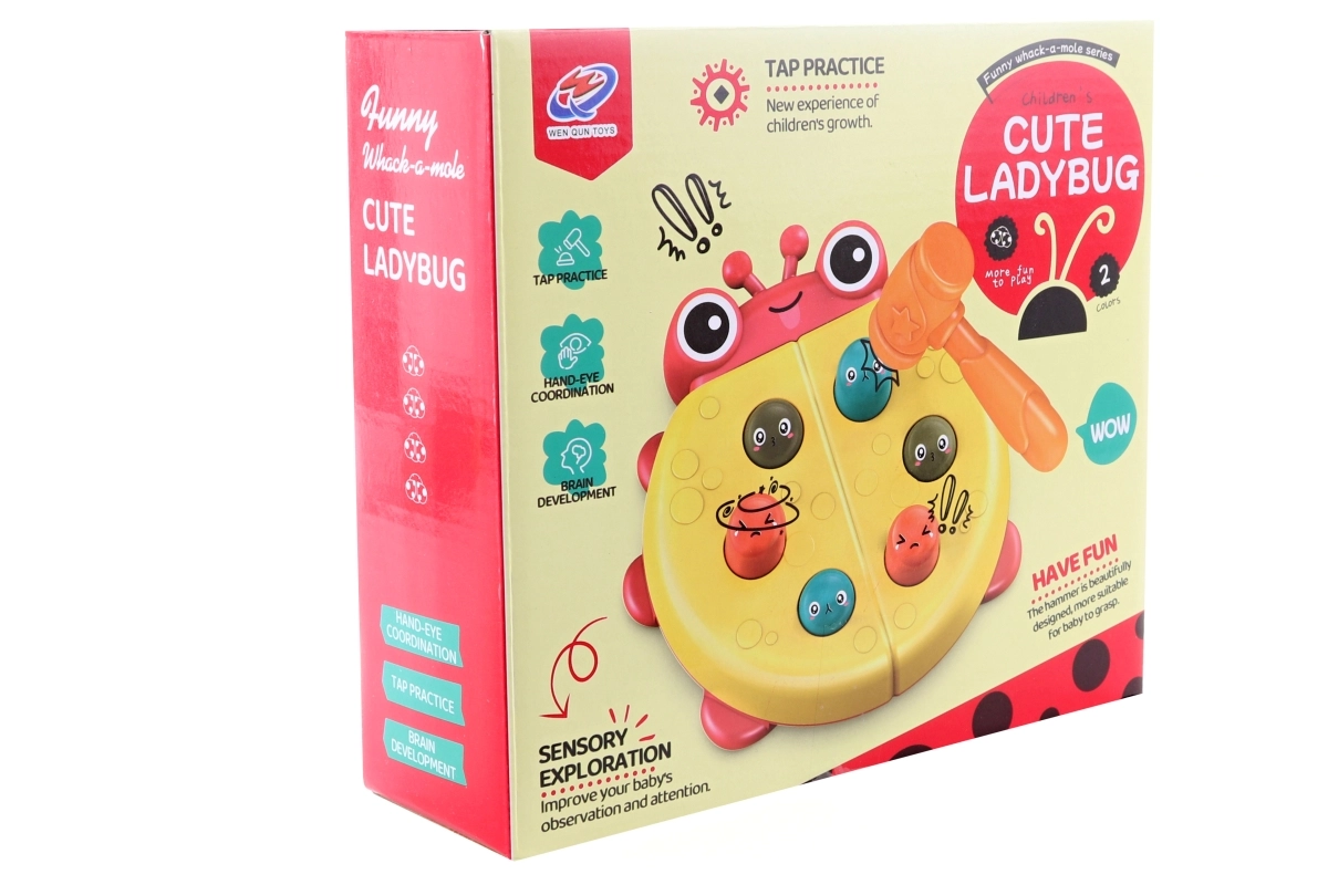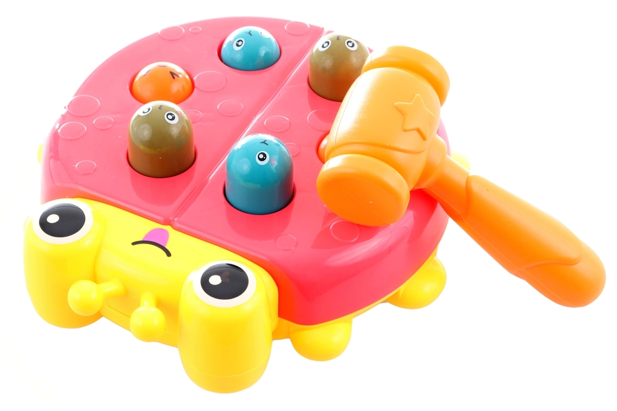 Zábavná a bezpečná hračka pro nejmenší – zatloukačka ve tvaru berušky. Podporuje jemnou motoriku, koordinaci oko–ruka a učí děti principu příčiny a následku: po zatlučení jedné hlavičky vykoukne druhá. Odolné plastové provedení a praktické balení v krabici.