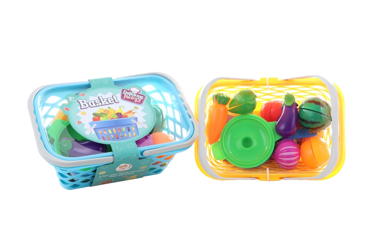 - Dětská kuchyňská sada – košík s potravinami na krájení