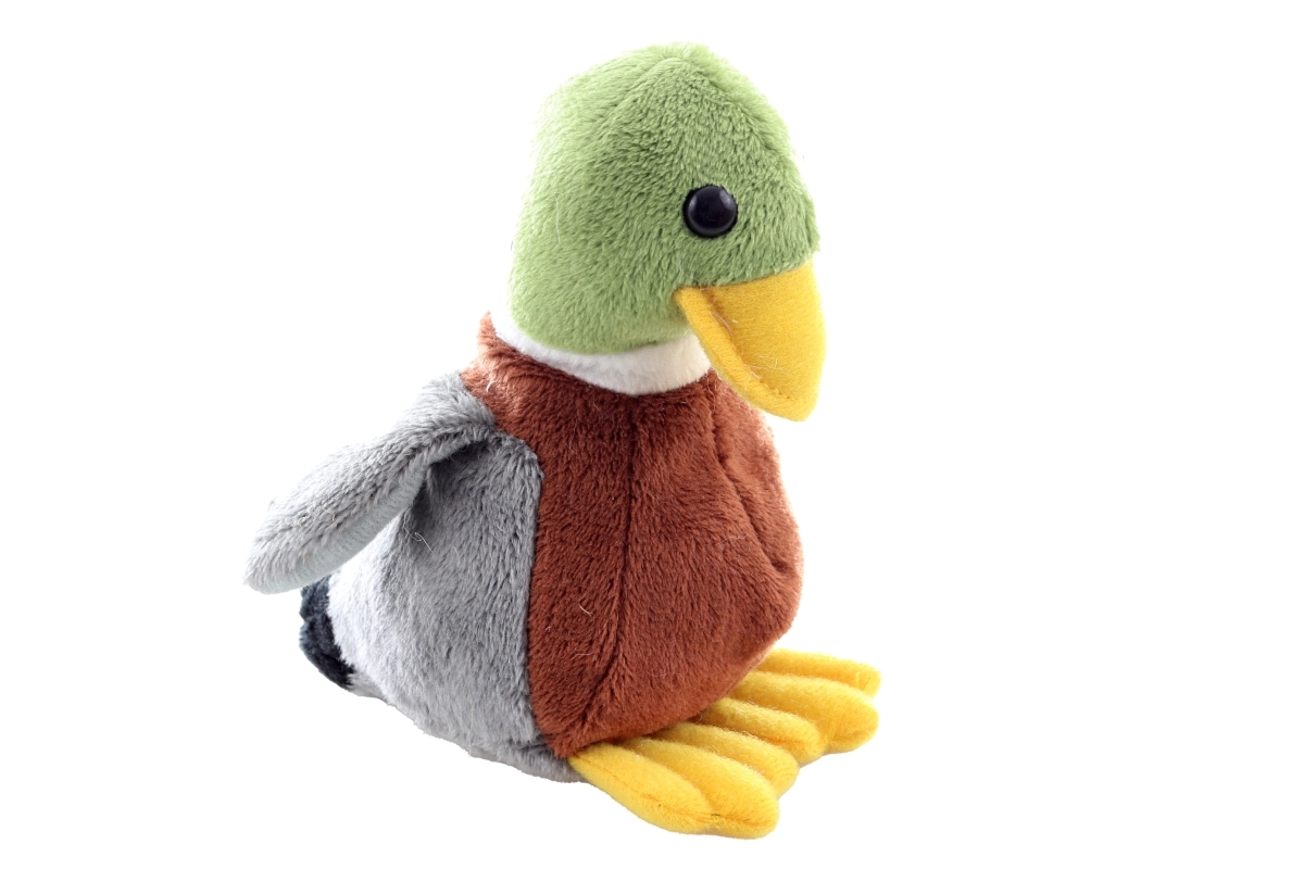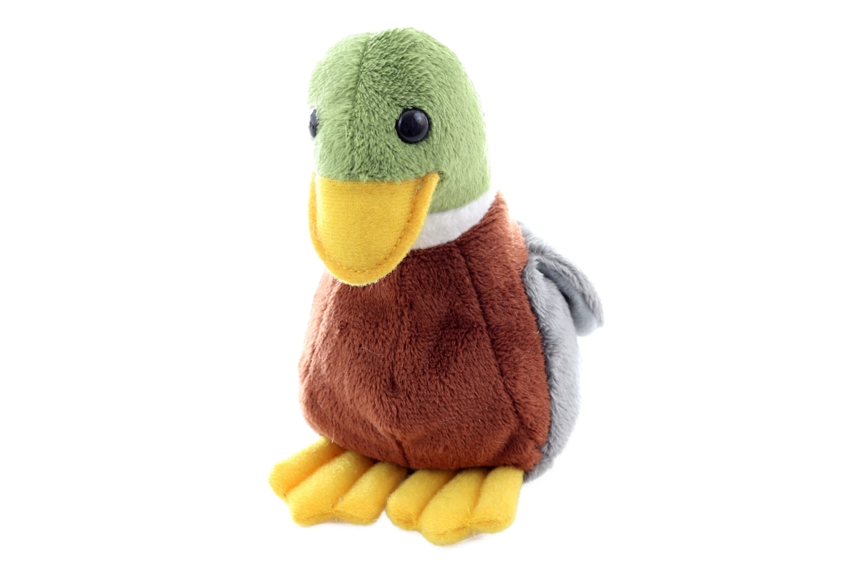 Tento detailně zpracovaný plyšový kačer s jemným hebkým povrchem a realistickým barevným provedením (zelená hlavička, žlutý zobáček a nožky, hnědé tělíčko, šedá křídla) potěší každého malého milovníka zvířátek. Díky kuličkám ve výplni si udržuje stabilitu a lépe se posazuje na poličku či do postýlky.