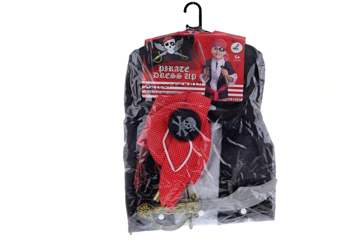 - Kompletní set: plášť, šortky, šavle, vlajka, šátek na hlavu, pásek a páska na oko.