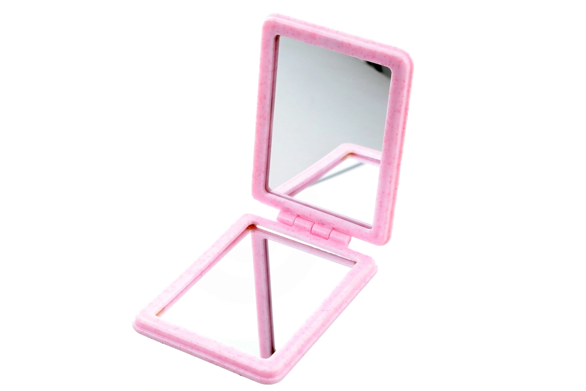 S rozměry cca 6 × 8 × 1 cm a lehkým plastovým provedením je zrcátko ideální do kabelky, batohu i kapsy – vždy po ruce pro rychlé úpravy.