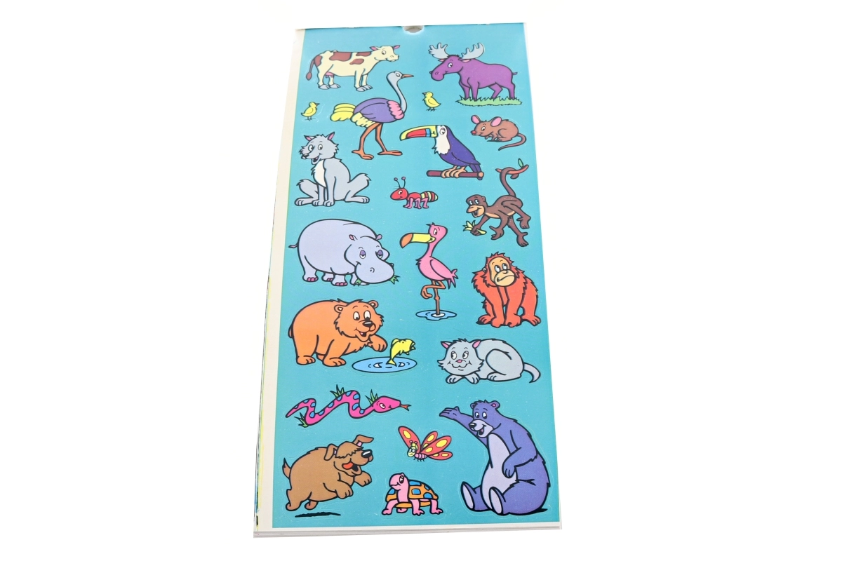 - 12 archů s pestrými motivy zvířátek.