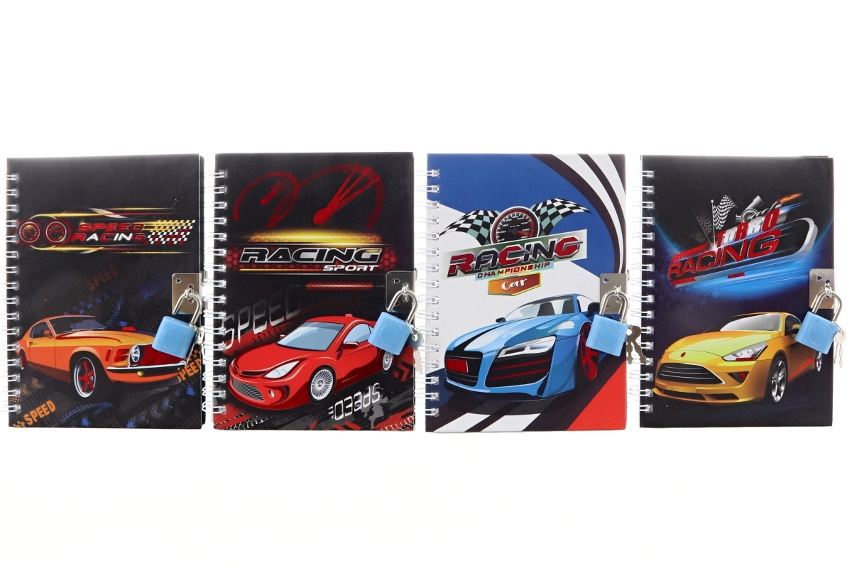 Praktický chlapecký zápisník se zámkem je ideální pro psaní deníku, poznámek či tajných plánů. Tvrdá obálka s atraktivními automobilovými motivy a pevná kovová spirála zajišťují pohodlné otáčení a dlouhou životnost. Součástí je zámek se dvěma klíčky pro maximální soukromí.