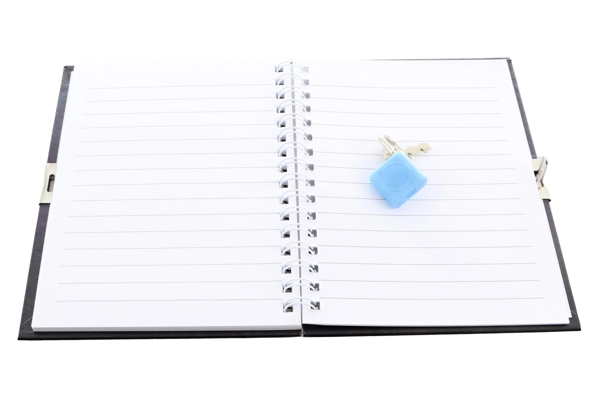 Zápisník je vybaven kovovým zámkem a dvěma klíčky, aby vaše poznámky a tajemství zůstaly v bezpečí.